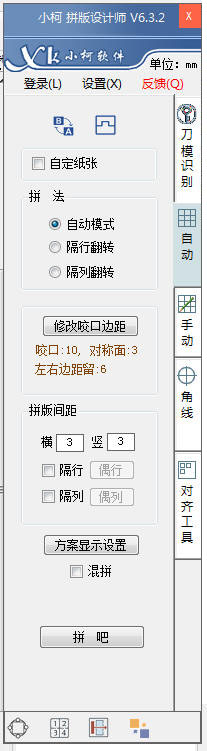 注意:如果是本软件【包装设计师V6]】绘制的包装不需要进行刀模识别这一步,直接进入【自动】拼版即可自动拼版